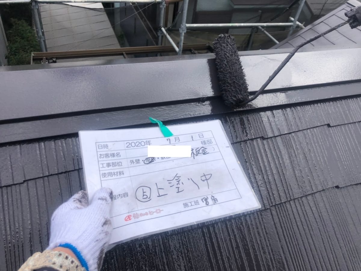 屋根の上塗り、中塗りはアステックペイントの