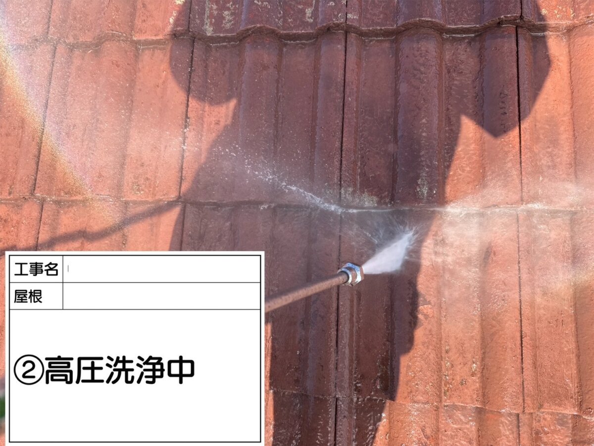 旧塗膜などを高圧洗浄することによって塵や汚れを洗い流します。